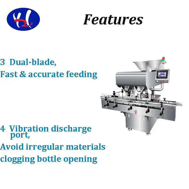 It utilizes high-precision photoelectric sensors combined with a vibration feeding system to ensure each item is counted individually and accurately before bottling.